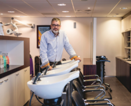 “Niet álle winst en verlies kunnen aan het functioneren van je team worden gekoppeld, vind ik. Winst is ook gezond blijven en hetgeen mogen doen waar je gelukkig van wordt. Want dat is lang niet voor iedereen vanzelfsprekend. Daar probeer ik bij stil te staan. Dat is een van de redenen dat wij met onze salons iedere maand een avond knippen in het Ronald McDonald Huis Sophia Rotterdam. Onze medewerkers doen dat helemaal belangeloos; ze krijgen alleen hun reiskosten vergoed. Het zijn momenten waarop ons team een bijzondere avond heeft , iets hechter wordt en iets terug kan doen voor de maatschappij.”